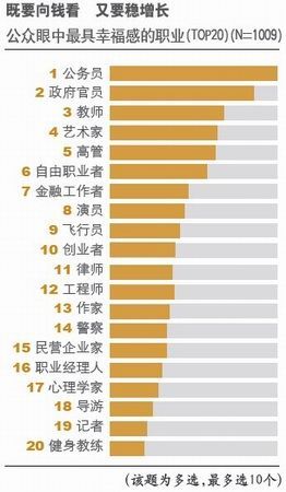 收藏 公众眼中最幸福五职业:公务员排名首位