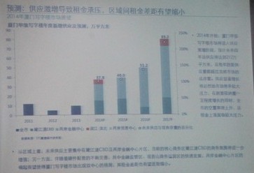 2014年开始,厦门甲级写字楼市场将进入供应激增阶段,预计未来四年总供应将达到212万平方米,且每年的新供应量都超过当前市场的总存量。潘育敏认为,供应的显着增长必然给市场带来较大压力,在刺激吸纳量一定程度增长的同时,全市的空置率也将上升,且对租金上涨构成压力。结合区域来看,未来供应主要集中在鹭江道CBD及两岸金融中心--当前核心商务区鹭江道CBD的商务氛围随着高品质物业的入市将得到进一步增强巩固;另一方面,鉴于厦门积极打造总部经济以及布局海峡两岸金融中心,一些外资机构尤其是金融服务类行业也在积极布局厦门,其对高端写字楼的需求也日渐旺盛。伴随着硬件配套的不断完善,尤其是金融监管区、观音山商务运营区的快速发展,两岸金融中心片区的崛起有望使得厦门写字楼市场出现双中心的格局,其租金差距也有望逐渐缩小。