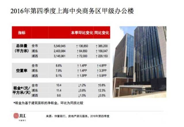 继住宅之后,商业地产也进入了“下半场”。刚过完年,JLL研究部抛出了最新的上海写字楼报告,破天荒的指出:2016年第四季度,浦东浦西甲级写字楼租金环比全线下跌,空置率全线滑坡!