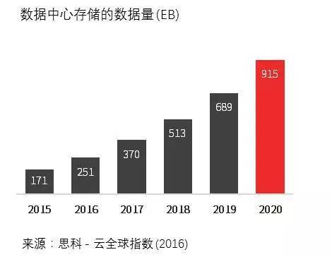 到2020年,数据中心存储的数据将增加500%以上。