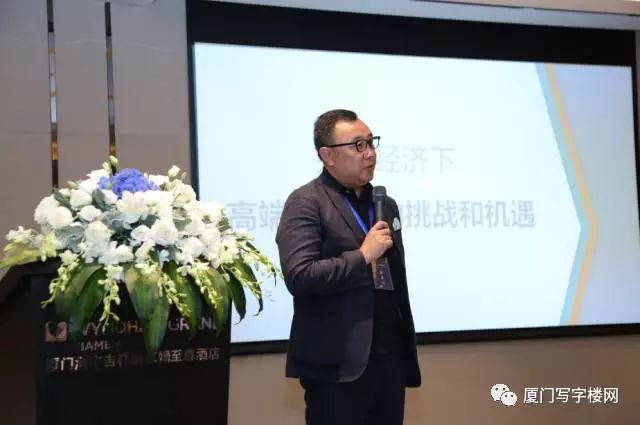 本次峰会的第三个环节是由来自恺信亚洲管理集团董事王铮先生为与会嘉宾发表了关于“共享经济下高端写字楼的发展机遇和挑战”的主题演讲。