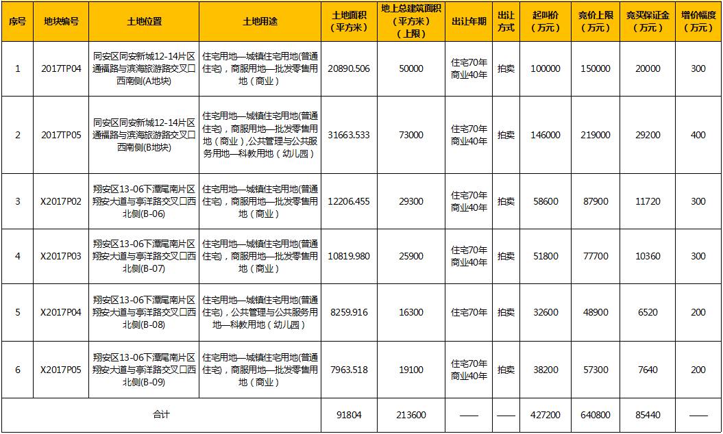 五、本次公告的六幅地块均要求受让人应一次性申请宗地商品住房预售许可证,并一次性全部对外公开销售。