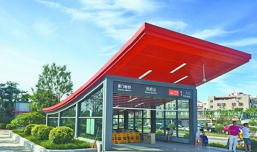 地铁出入口设计具有浓浓的闽南味。