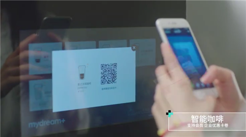 会议结束后,扫描咖啡机屏幕上的二维码,购买一杯香醇的咖啡,缓解紧张的心情。
