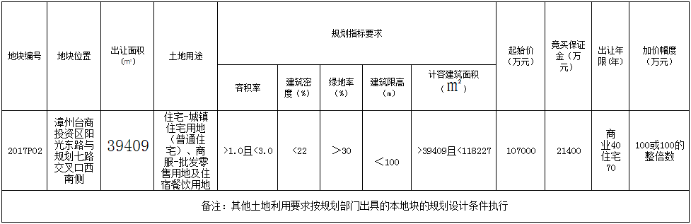 角美2017P02商住地出让指标