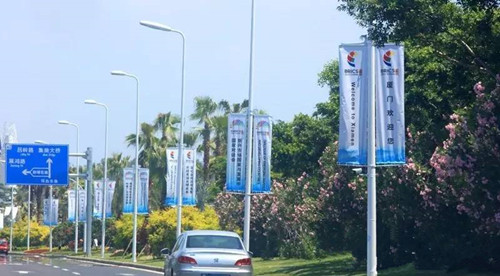 ▲厦门环岛路一带,写着“厦门欢迎您”等相关内容的灯杆道旗,为盛会营造良好氛围。