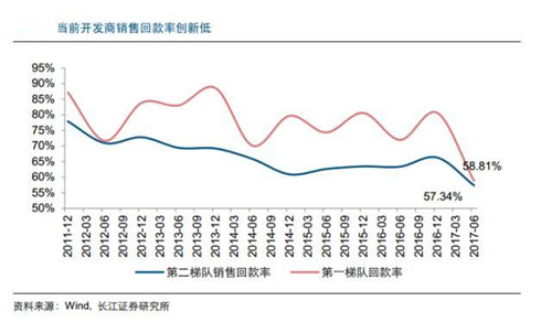 长江证券数据统计,2017年上半年34家重点房企净负债率创历史新高,达到113%,相较2016年全年增加16%,这意味着今年流动性中性偏紧,若有息债务集中到期,开发商将面临无法偿还的困境。