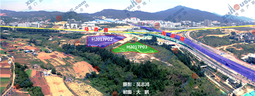 有趣的是,下周五将拍的海沧临港新城两幅商住地块(H2017P02、H2017P03),就位于厦门总价地王H2016P03地块西北侧,基本和H2016P03地块“享受”相同的配套条件。而从我们的实拍图结合区位图上看,这两块地更接近马青路,也更接近马青路北侧的绿苑中沧工业园。