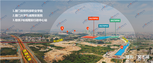 下周五将拍的翔安东山片区三幅商住地块(2017XP02、2017XP03、2017XP04),全部位于翔安东山路与石厝路之间。从实景图我们可以看到,这三幅地块就在地铁3号线边上,靠近浦边站,附近还有翔安行政中心站,这两个站点均已在建设中。