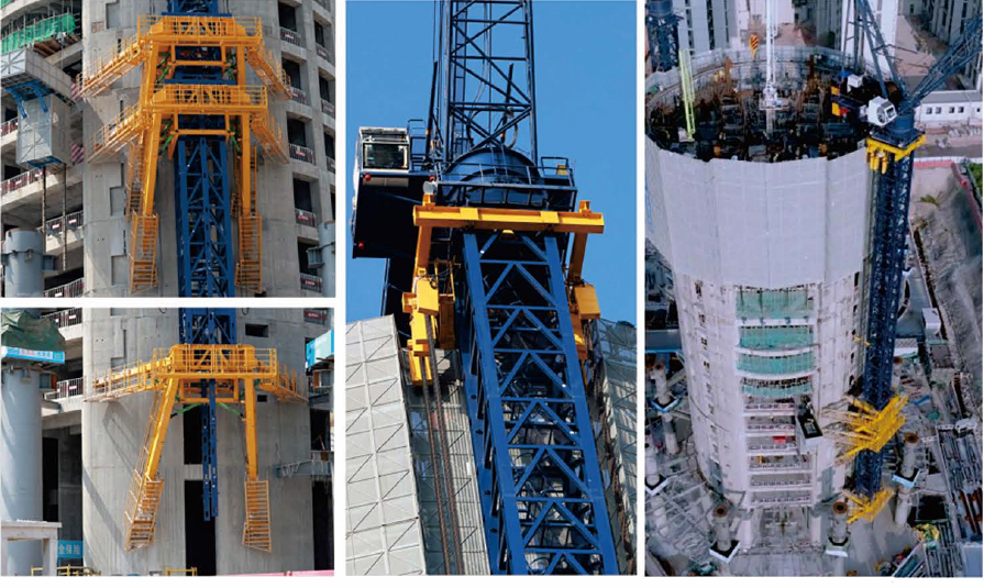 中建八局厦门国际银行新总部大厦项目总工程师郝黎明介绍,项目施工过程中,应用“天泵+溜管+溜槽”联合浇筑技术,尤其在垂直运输方面,采用自主研发的首台外挂式自爬升塔吊。这一塔吊打破了传统外挂式塔吊爬升需占用另一台塔吊的技术壁垒,通过装配式连接避免了高空焊割,大幅提升了爬升效率及安全性。